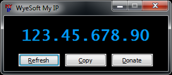 WyeSoft My IP is a very simple and completely portable application that tells you your current external IP address (public IP; your address on the internet), and allows you to copy it to the clipboard with one click.